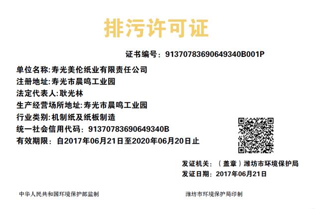 壽光美倫紙業有限責任公司新上高檔文化紙項目環境保護設施竣工及調試日期公示